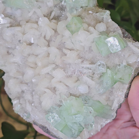 Meet your new crystal companion—an Apophyllite Cluster that's basically a tiny palace of sparkle! These geometric beauties gleam with an almost otherworldly glow, making them irresistible to gaze upon. Whether you're a seasoned crystal enthusiast or just starting your mineral journey, this gem brings playful energy and natural elegance to any corner. Display it proudly and watch it catch the light in the most magical ways. A delightful addition to your collection that's sure to spark joy!