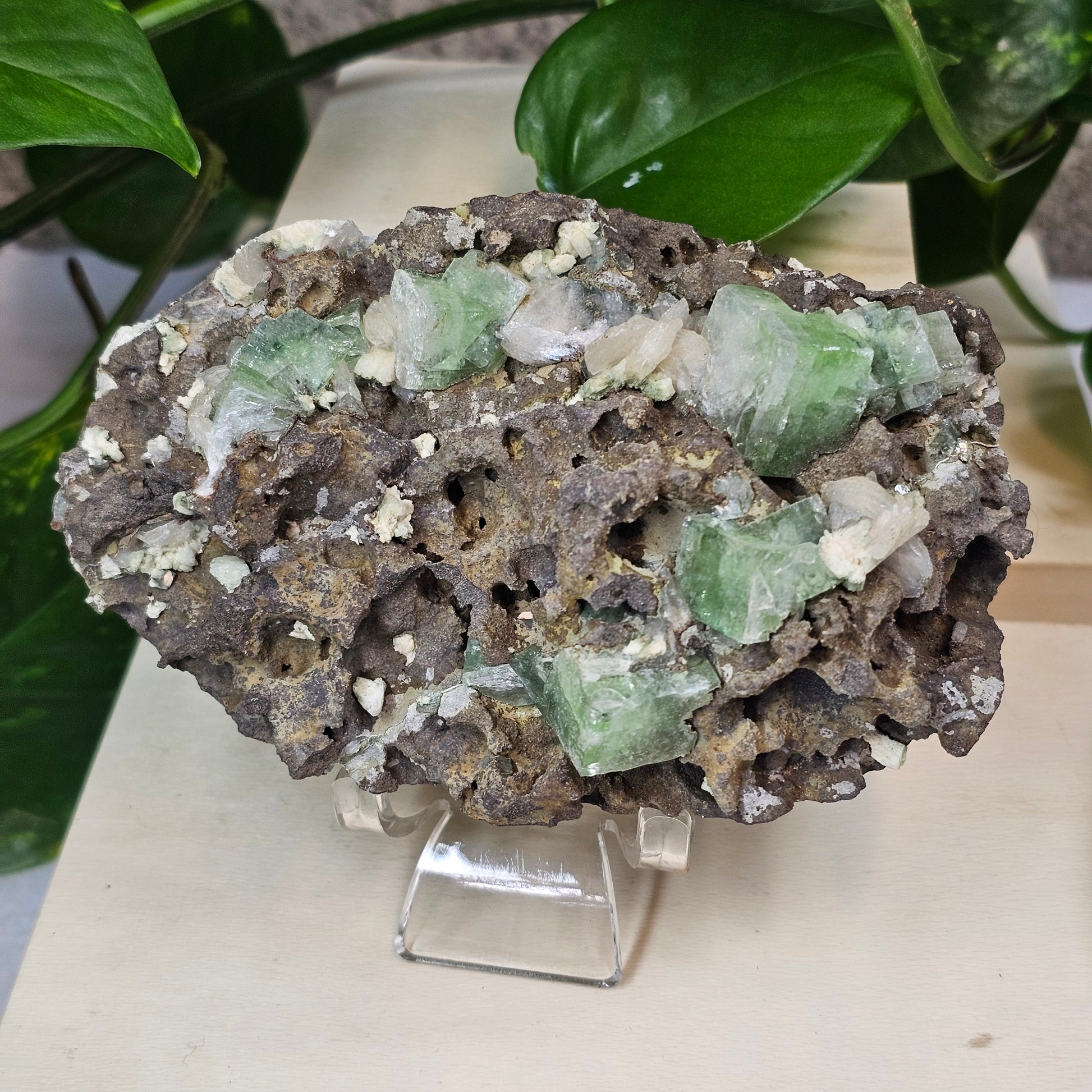 Discover the dynamic duo of the crystal world! This stunning Fluorapophylite with Stilbite specimen brings together two powerhouse minerals in one gorgeous display. Fluorapophylite's delicate, pyramid-shaped crystals sparkle with ethereal beauty, while Stilbite's peachy-pink layers add warmth and charm. Perfect for collectors who appreciate mineral variety or anyone seeking to energize their space with natural geological artistry. Each piece is a unique conversation starter that celebrates Earth's incredible creative talents.