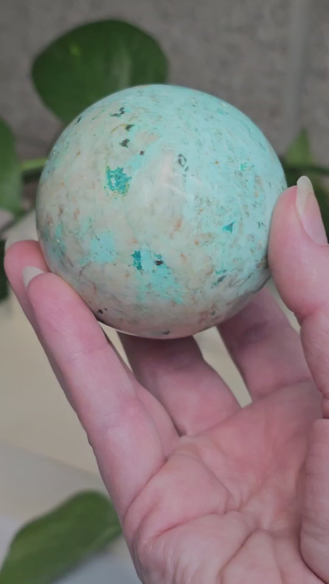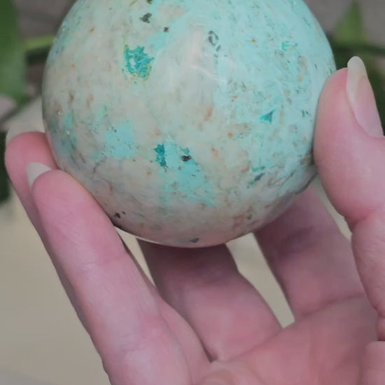 Peruvian Amazonite Sphere with UV Reactive Calcite